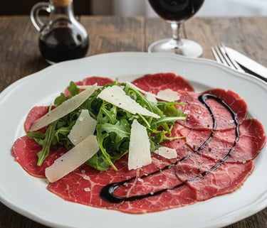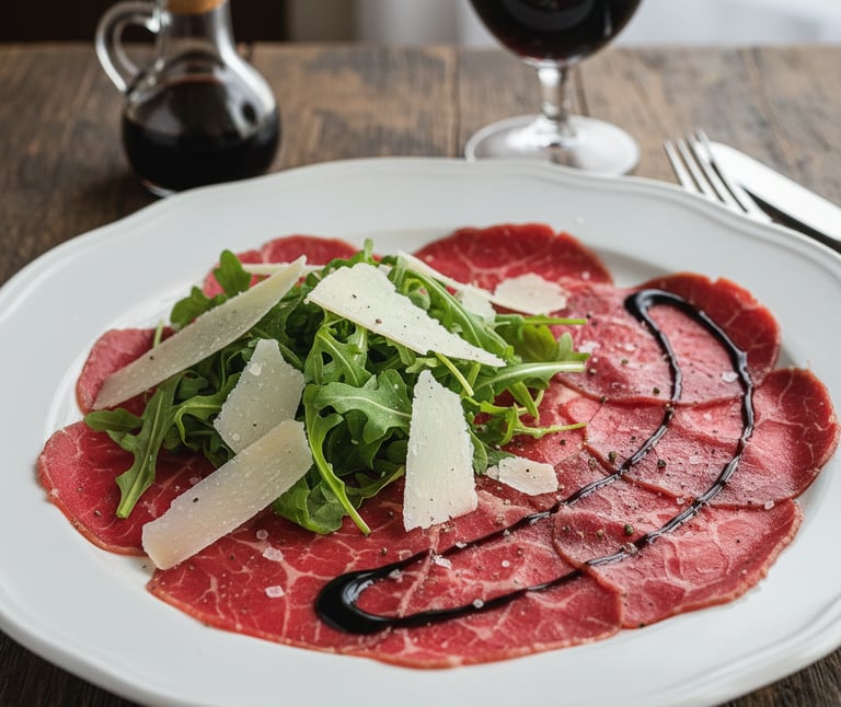 Carpaccio di chianina rucola e grana con glassa di aceto balsamico invecchiato 6 anni